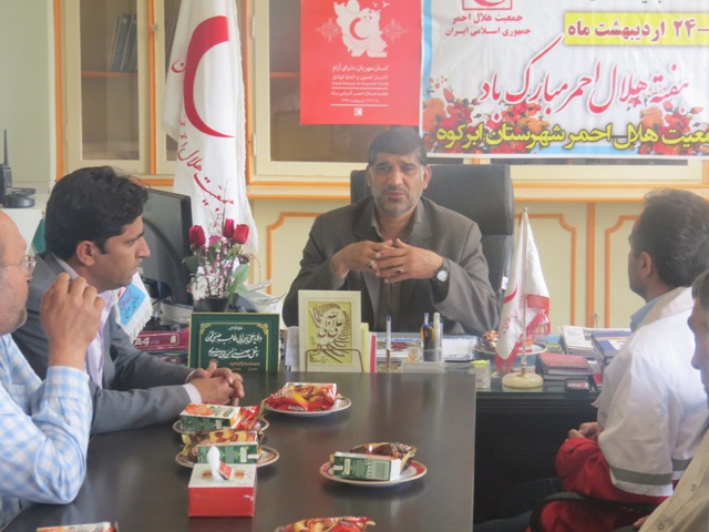 به گزارش روابط عمومي جمعیت هلال احمر استان یزد ؛ خلیل اکرمی رئیس جمعیت هلال احمر ابرکوه اظهار داشت : به مناسبت روز جهاني صلیب سرخ و هفته هلال احمر فرماندار ابرکوه به همراه دبیر محترم مدیریت بحران فرمانداری از جمعيت هلال احمر شهرستان بازديد و با پرسنل و اعضا اين جمعیت ديدار نمود .