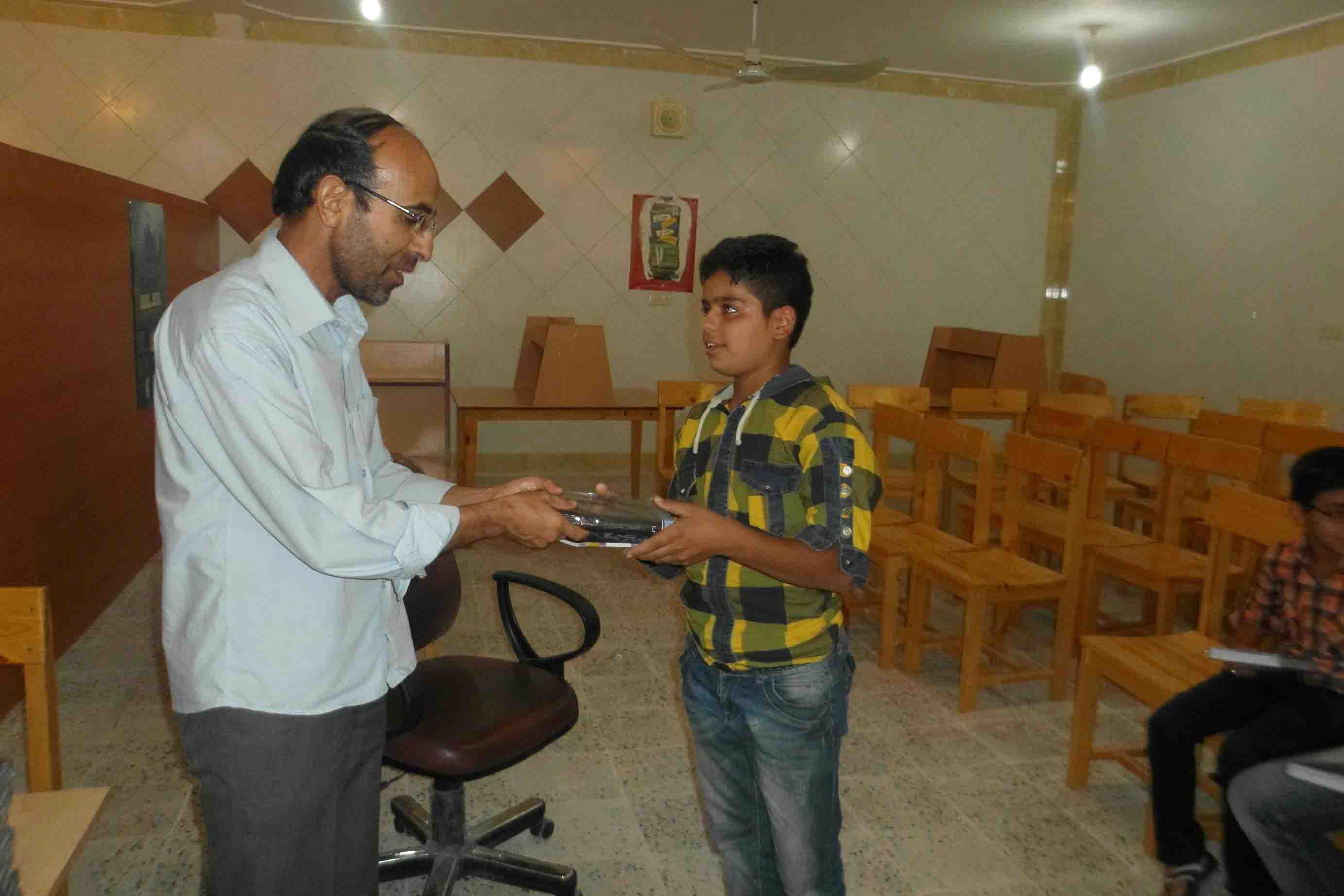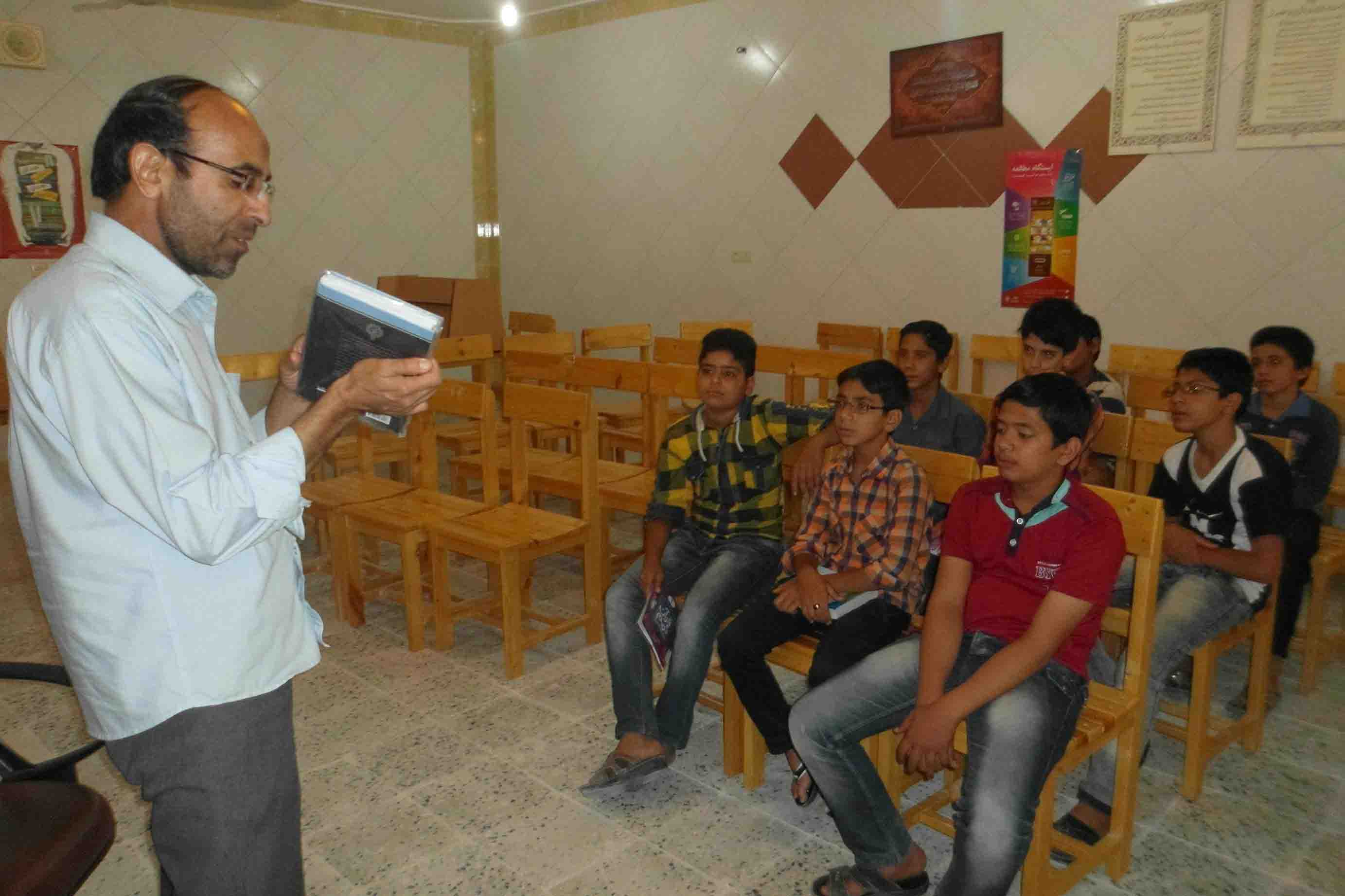 در پایان پس از پذیرایی و شیرین شدن كام نوجوانان به مناسبت ولادت امام رضا (ع)، "بصیری"، نویسنده و موضوع كتاب "داستان  پیامبران از آدم تا خاتم" اهدایی اداره كتابخانه های عمومی را به شركت كنندگان معرفی و آنها را به تحقیق و تأمل در زندگی پیامبران و ائمه و استفاده مفید و مؤثر از كتاب مذكور تشویق نمود.