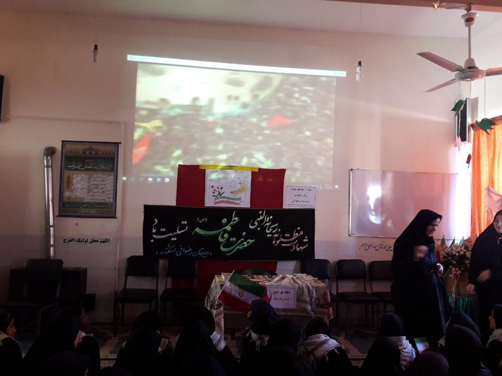معاون فرماندار در خصوص نقش دانش آموزان و زنان در انقلاب،وسیره حضرت فاطمه (س) سخنانی ایراد فرمودند،سپس زنگ انقلاب توسط رئیس اداره تبلیغات اسلامی نواخته شد و سپس کلیپ نوای انقلاب،کاری از دانش آموزان کانون، به نمایش گذاشته شد.