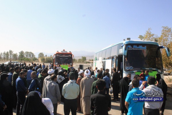 نخستین کاروان زیارتی پیاده روی اربعین در بهاباد صبح امروز دوشنبه 15 مهرماه98 با بدرقه فرماندار بهاباد، معاون سیاسی امنیتی و اجتماعی فرماندار، فرماندهان انتظامی و بسیج، رئیس اداره تبلیغات اسلامی شهرستان و خانواده این زائران از گلزار شهدای بهاباد با دو دستگاه اتوبوس راهی کربلا‌ی معلی شدند.