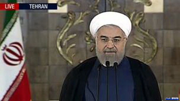 حسن روحانی رئیس جمهوری ایران نیز در پیام خود به مناسبت حصول توافق هسته ای گفت صفحه جدیدی آغاز شده است و مبنای این صفحه جدید این است که حل معضلات در جهان راه های ساده تری هم دارد. عکس برگرفته از تصاویر پرسی تی وی
