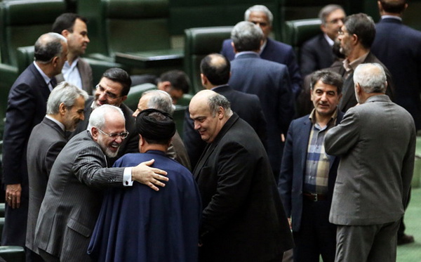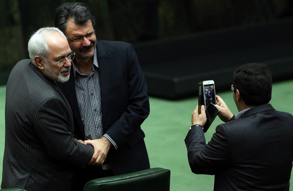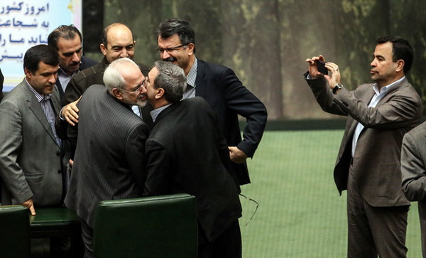 با حضور ظریف در مجلس، تعداد زیادی از نمایندگان با تجمع در اطراف صندلی ظریف به مصافحه و روبوسی با وی پرداختند و به خاطر اجرایی شدن برجام و لغو تحریمها به وی دست مریزاد گفتند. عکس های محمدرضا زراندوش، محمدبابائی عکاس ایرنا، حامد حق دوست عکاس مهر، امین خسروشاهی عکاس ایسنا، مهدی بلوریان عکاس فارس و سید محمود حسینی عکاس تسنیم از وورد ظریف به مجلس را در زیر می بینید.