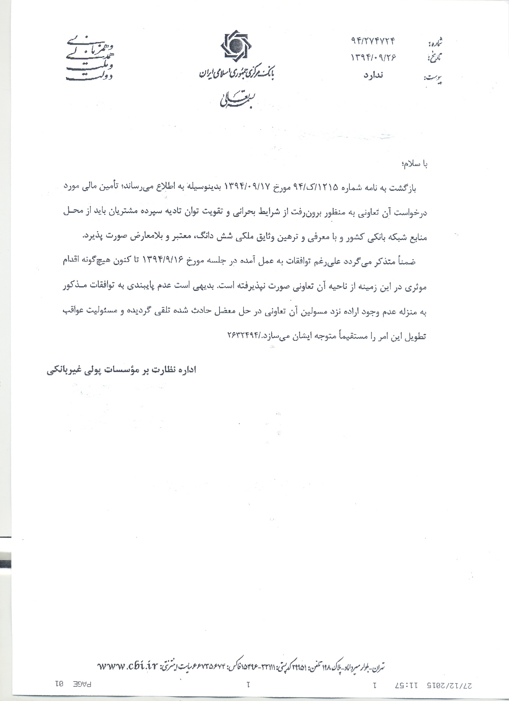 گفتنی است طی روزهای گذشته، مسئولان موسسه یادشده، بارها از حسن نیت و تمایل به همکاری با بانک مرکزی سخن گفته و دایره اموال موسسه را نیز بسیار گسترده عنوان کرده اند ولی در عمل در چارچوب پیشنهادی سیاستگذار پولی اقدام مثبتی از آنان دیده نشده است.