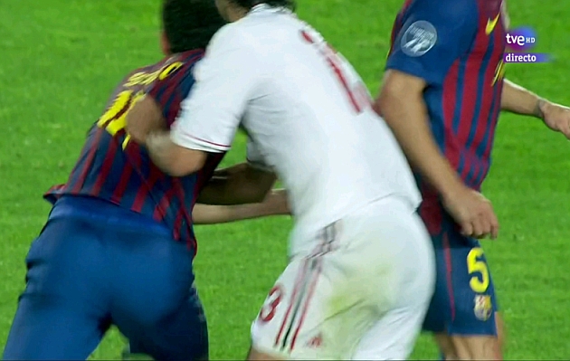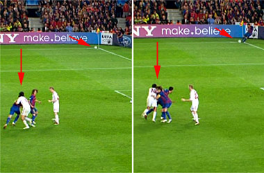 اين صحنه ايست که در نهايت منجر به گل دوم و سرنوشت ساز بارسا در اين بازي شد.