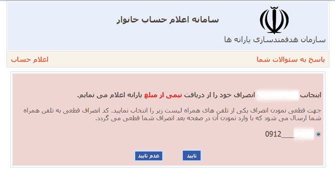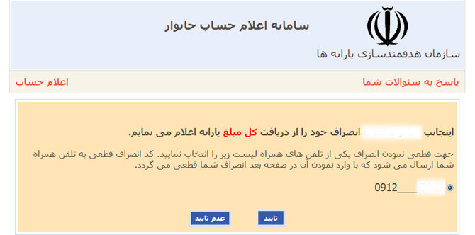 اگر می خواهد همچنان یارانه بگیرد ، «باید» برای «عدم انصراف» به سایت رفاهی برود و «گزینه عدم انصراف» را انتخاب کند.
