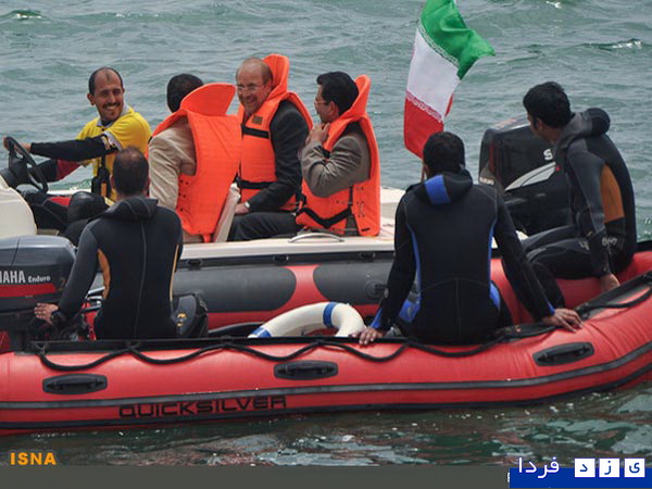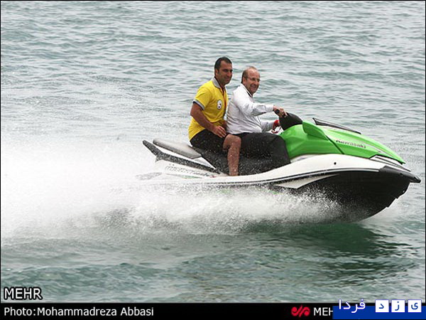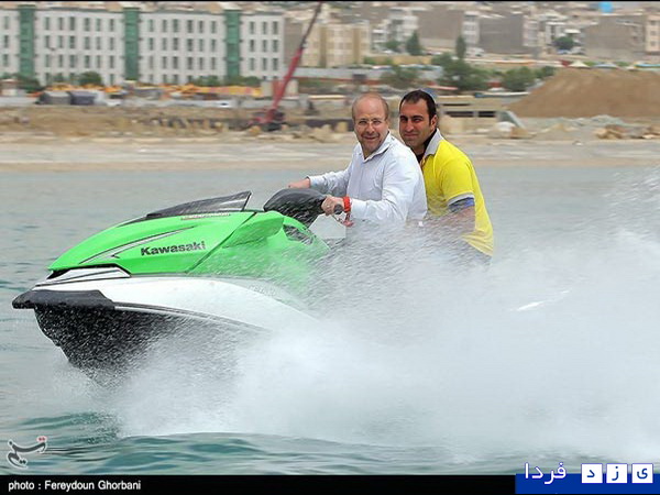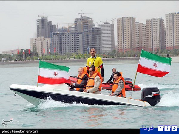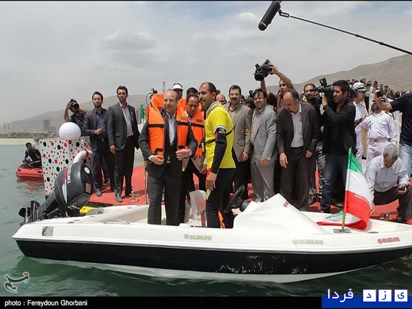شهردار تهران پس از برگزاری مراسم افتتاح دریاچه و سخنرانی در جمع حاضران سوار بر جت اسکی در این دریاچه مصنوعی به گشت زنی پرداخت.