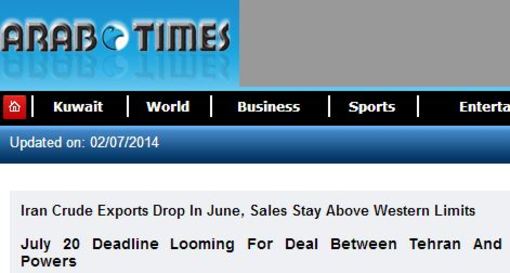 «عرب تایمز» از جمله رسانههایی است که بر پایه آمار مربوط به رهگیری نفتکشها از کاهش صادرات نفت ایران در ماه ژوئن نسبت به ماه می خبر داده است. با وجود این، صادرات نفت ایران همچنان بالاتر از میزان تعیین شده در توافق هستهای ژنو است.