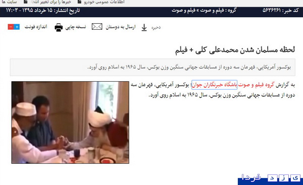 سوتی و گاف باشگاه خبرنگاران جوان صداوسیما در مورد فیلم لحظه مسلمان شدن محمدعلی کلی بازهم لو رفت +سند و فیلم واقعی