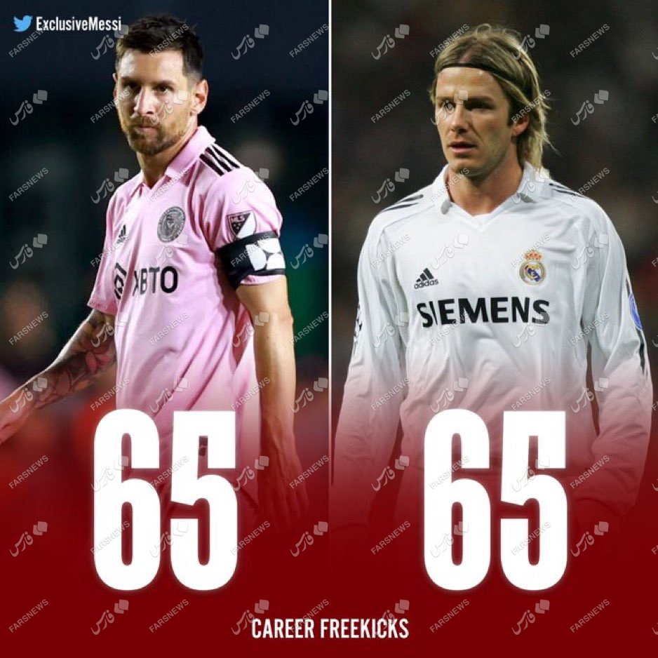 بکام که به ضربات زیبای کاشته اش شهرت داشت 65 گل را از روی ضربه آزاد به ثمر رسانده بود که مسی با گل مقابل اکوادور به رکورد بکام رسید.