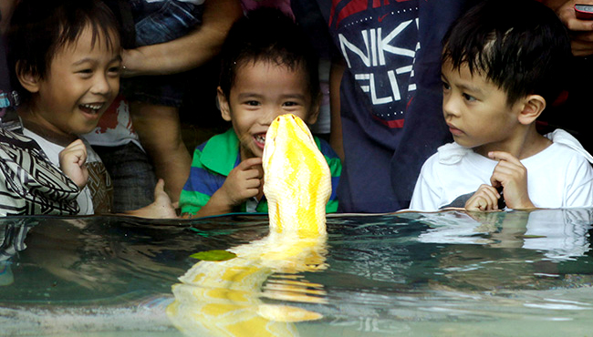 عکس/ تماشای مار پایتون از پشت شیشه؛ باغوحش فیلیپین