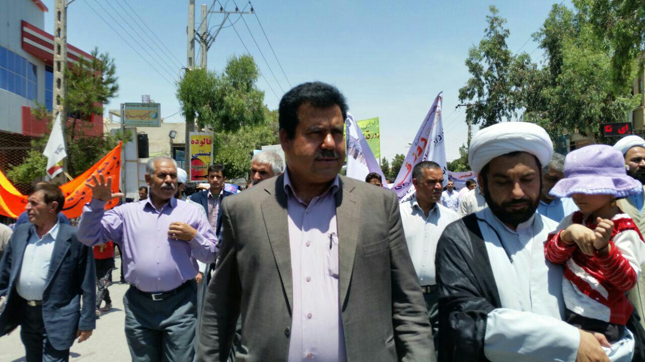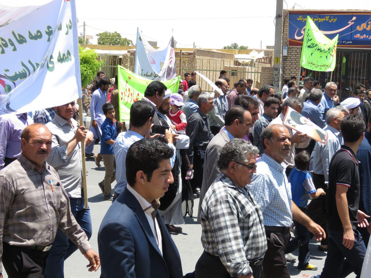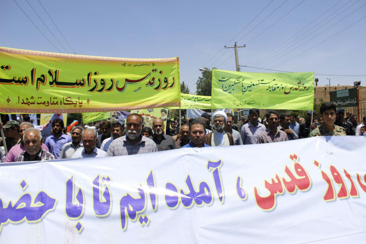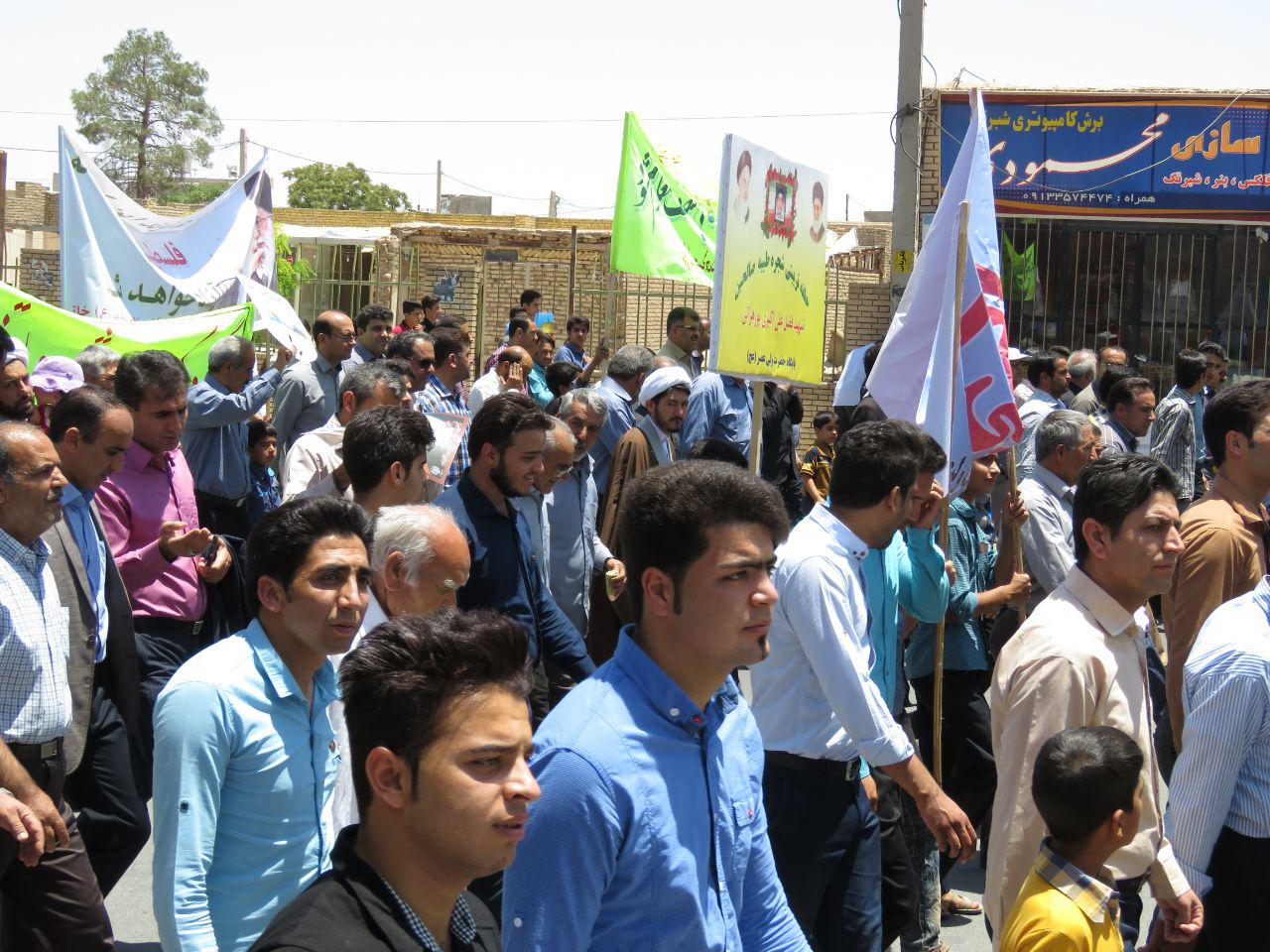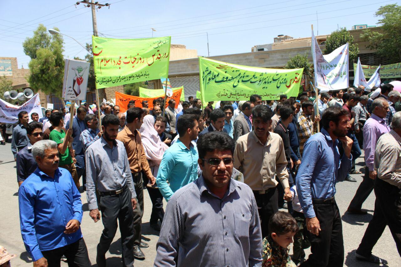 مراسم راهپیمایی روز جهانی قدس در شهرستان خاتم با حضور پر شور مردم و مسئولین
