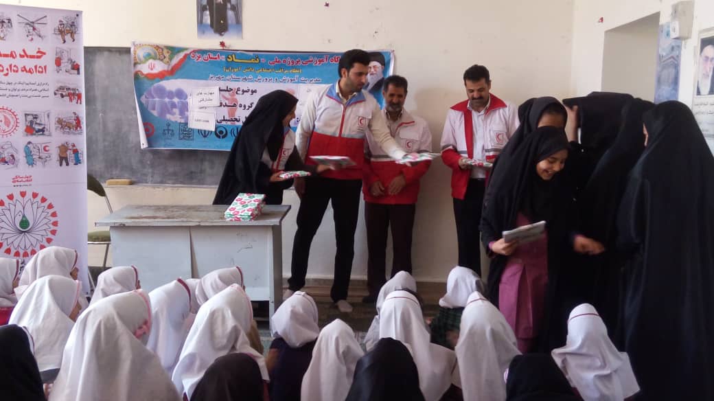زارعیان بیان داشت :آموزش آمادگی در برابر مخاطرات توسط مربی امداد جمعیت جهت45 نفر از دانش آموزان دبستان دخترانه آمنه واهدای جوایز توسط داوطلبان به دانش اموزان کی دیگر از برنامه های این کاروان سلامت بود