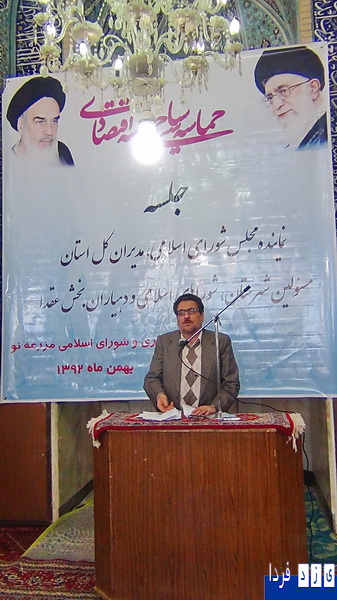به دعوت نماینده مردم اردکان و در ادامه جلسات بررسی مشکلات بخشهای تابعه شهرستان اردکان،امروز جمعه جلسه ای با حضور معاون عمرانی استاندار،8 نفر از مدیران کل استان ( آب و فاضلاب روستایی،میراث فرهنگی،جهاد کشاورزی،راه و شهرسازی،صنعت،معدن و تجارت،آموزش و پرورش،ورزش و جوانان،بنیاد مسکن انقلاب سلامی)و دو تن از معاونین ادارات کل( گاز و آب منطقه ای)،فرماندار،امام جمعه عقدا،رئیس شورای اسلامی شهرستان،دهیاران و اعضای شوراهای اسلامی بخش عقدا و جمعی از مدیران دستگاه های اجرایی و مسئولان شهرستان و مردم بخش در محل روستای مزرعه نو برگزار و مسائل و مشکلات بخش عقدا مورد بررسی و تصمیم گیری قرار گرفت.