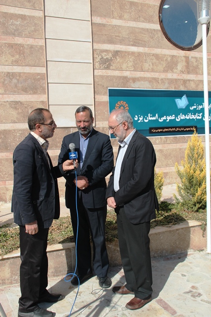 يادآور مي شود علیرضا مختارپور، دبیرکل نهاد کتابخانه های عمومی کشور كه دهم اسفند ماه، با هدف افتتاح کتابخانه شهید مطلب شفیعی و دیدار و گفتگو با کتابداران یزدی به این استان يزد سفر كرده بود با حضور در مجتمع گردشگري ارم اسلاميه شهرستان تفت در گردهمايي كتابداران كتابخانه هاي عمومي استان يزد حضور يافت.