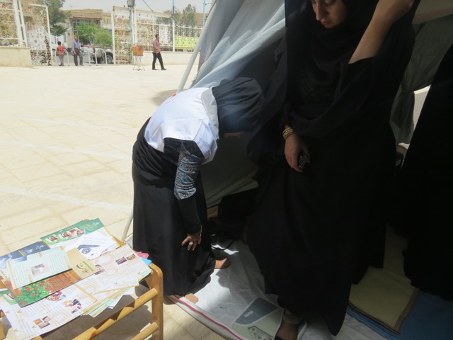 به گزارش روابط عمومی جمعیت هلال احمر استان یزد / خلیل اکرمی اظهار داشت : اعضا کانون دانشجویی هلال احمر دانشکده پیراپزشکی ابرکوه به مناسبت بزرگداشت هفته سلامت ، اقدام به برپایی چادر سلامت و آموزش و توزیع بروشورهای آموزشی در زمینه تغذیه سالم و نحوه مقابله با بحران خشکسالی و گرمازدگی نمودند .