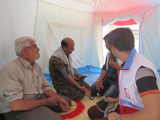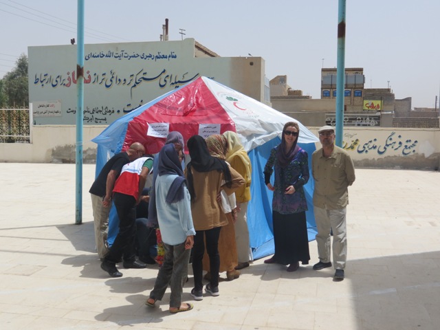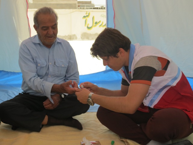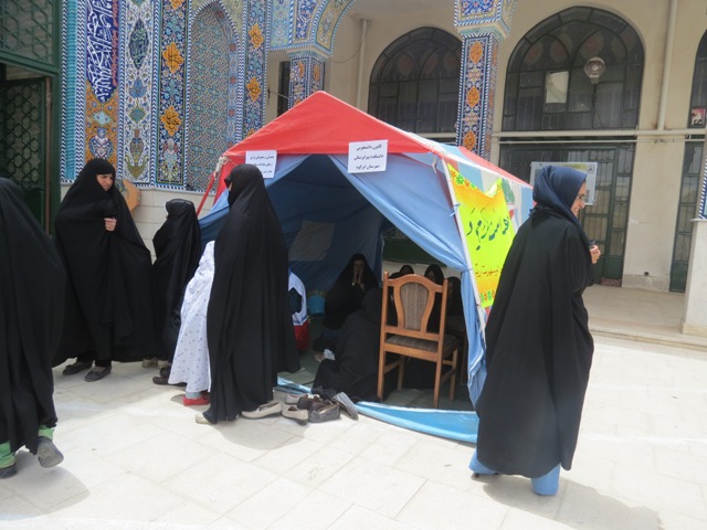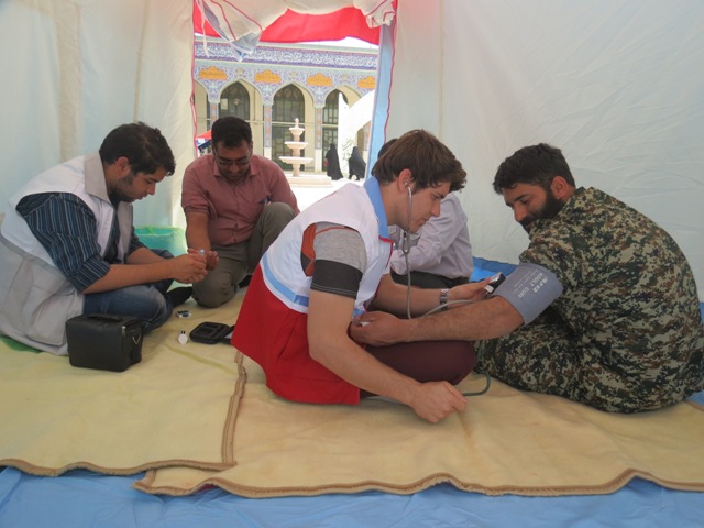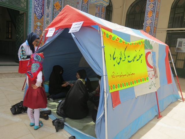 اعضا کانون دانشجویی هلال احمر ابرکوه با برپایی چادر سلامت در بین نمازگزاران اقدام به کنترل فشار خون و نمودند