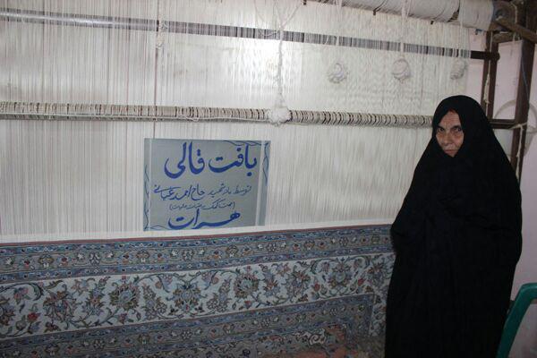 مادر شهيد، فرش دستباف خود را به عتبات عاليات هديه كرد