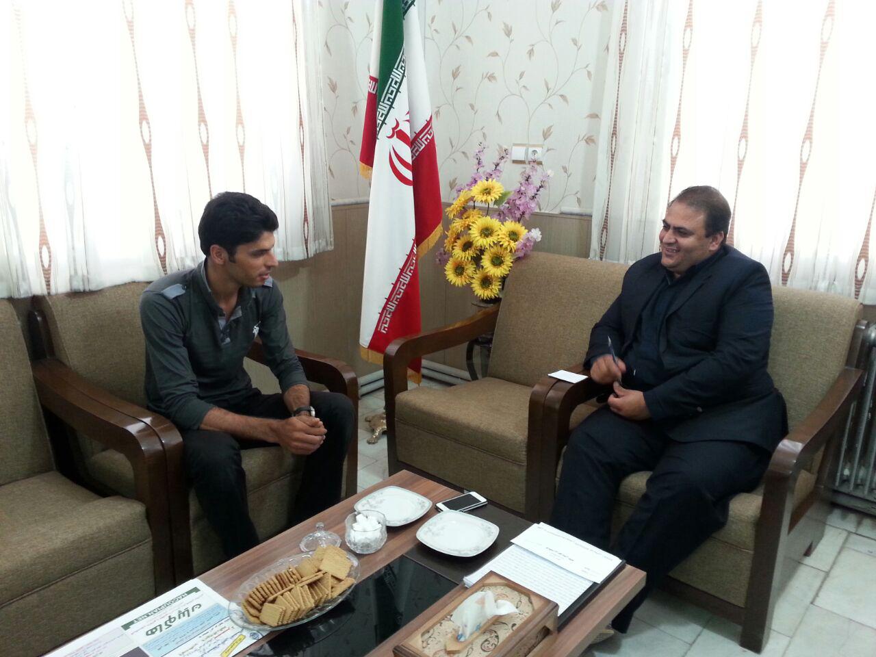 گفتگوي صميمانه حسين برزگر مروستي دارنده رتبه اول آزمون دكتري فيزيولوژي ورزشي دانشگاه تهران با زاده رحماني، فرماندار خاتم