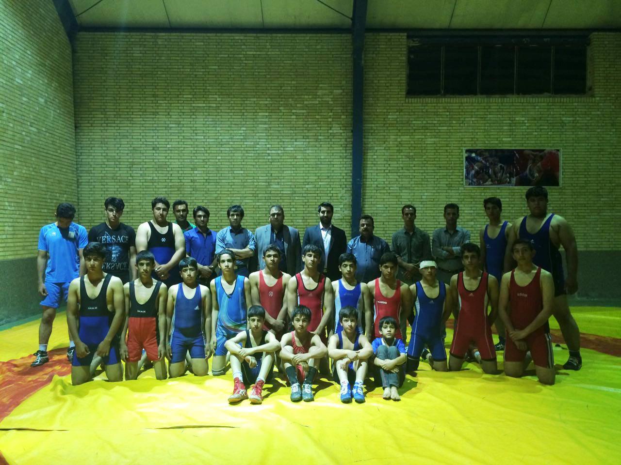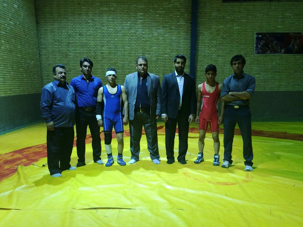 بازديد زاده رحماني، فرماندار خاتم و شيباني، رئيس هيئت كشتي استان از سالن تمرينات كشتي گيران هرات در رده هاي سني مختلف