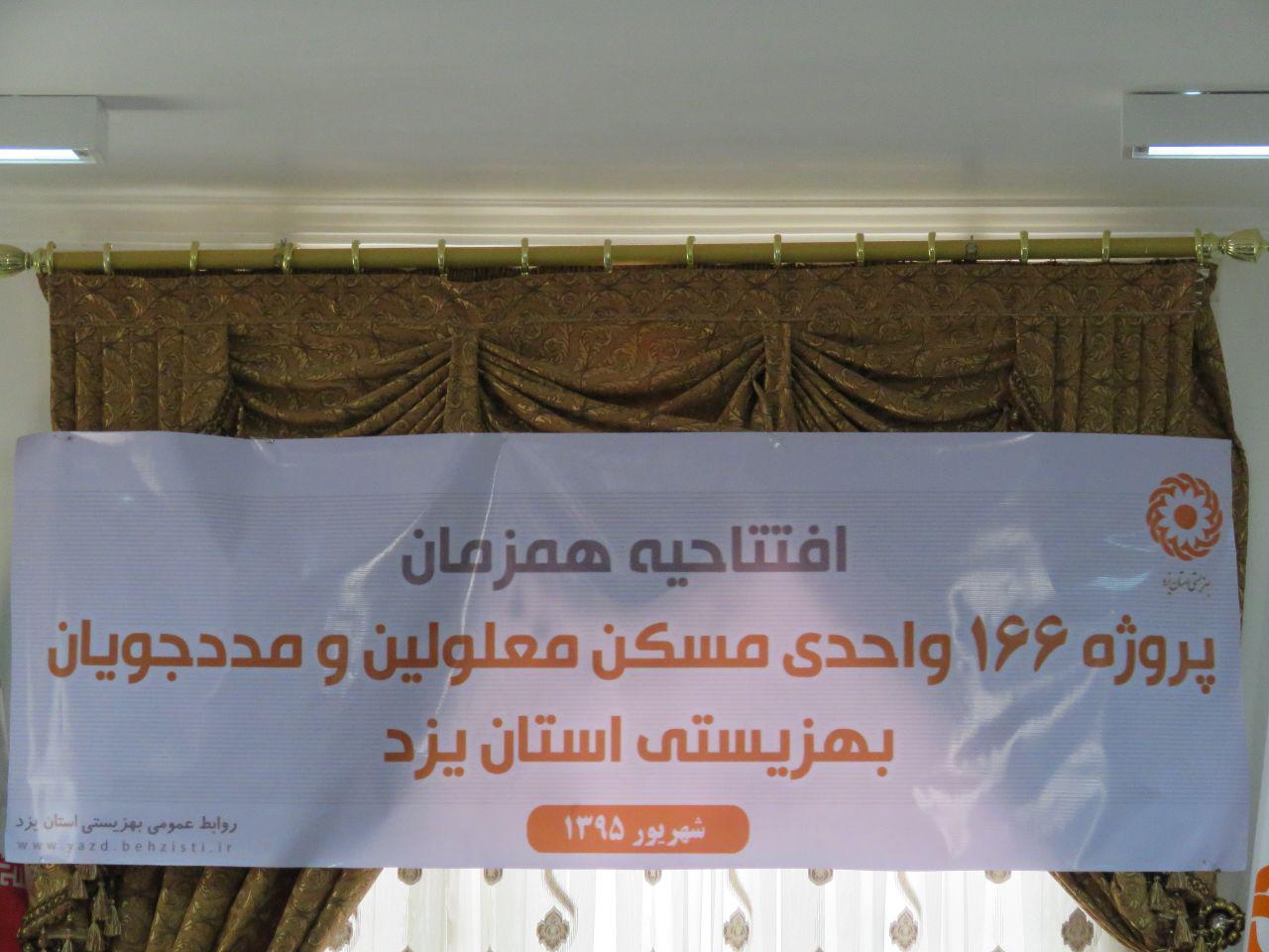 با حضور معاون توسعه مدیریت و منابع انسانی سازمان بهزیستی کشور 166 واحد مسکونی معلولان و مددجویان استان یزد به صورت همزمان در خاتم افتتاح شد که 32 واحد از این تعداد در خاتم و بقیه در شهرهای اردکان و بافق است.