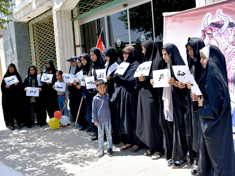 شعار علیه رژیم صهیونیستی، حمایت از مردم فلسطین و دعا برای آزادسازی قدس شریف و پیروزی مسلمانان جهان در موج مبارزاتی که به راه افتاده، دائم از بلندگوهای به گوش میرسید.