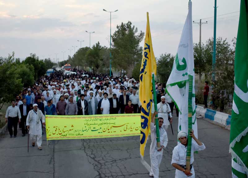 حجت الاسلام سید علی طباطبایی مدیرکاروان اظهار کرد: سفر یک هزار کیلومتری اعضای ۱۴۰ نفری کاروان که از قشرهای مختلف خصوصاً جوانان هستند، به مشهد ۳۰ روز طول میکشد.وی تصریح کرد: زائران در گروههای هشت گانه از جمله سقایی، علمداری، نگهبانی و خادم الرضایی سازماندهی شدند و در این ایام از مسائل مختلف فرهنگی و دینی بهره مند میشوند. مدیر کاروان زیارتی پیاده بسیجیان امام رضا (ع) بافق بیان داشت: دعای عهد، زیارت عاشورا، کلاسهای بصیرتی، اذکار روزانه، نشستهای اعتقادی، نماز شب، نمازهای جماعت در سه وقت برگزاری برنامه شهادت امام صادق (ع) و میلاد حضرت معصومه (س) و امام رضا (ع) از مهمترین برنامههای این کاروان در طول مسیر است.طباطبایی تصریح کرد: این کاروان هنگام عبور از شهرها و آبادیها از افراد بستری در منازل، عیادت میکنند و ضمن سرکشی از بیمارستانها و مراکز نگهداری معلولان، زیارت امامزادگان و غبارروبی قبور شهدا، با علما و مسئولان دیدار میکنند.کوچکترین و مسنترین زائر کاروان ۱۷ و ۷۰ سال سن دارند.