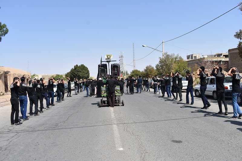 هیئتهای مختلف عزاداری از محلات مختلف شهر بهاباد به صورت دسته جات سینه زنی وزنجیرزنی حرکت و در رثای سید و سالار شهیدان دشت کربلا به سوگواری وعزاداری پرداختند.