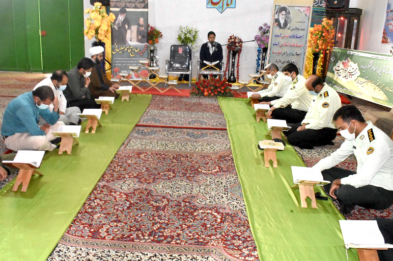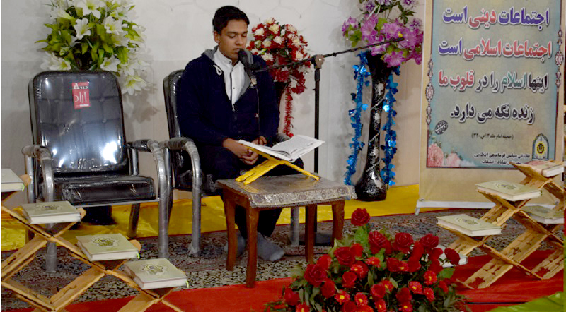 دراین محفل نورانی امیرحسین خواجه ای یکی از قاریان برجسته شهرستان آیاتی ازکلام الله مجید را برای شرکت کنندگان در این محفل نورانی قرائت کرد .