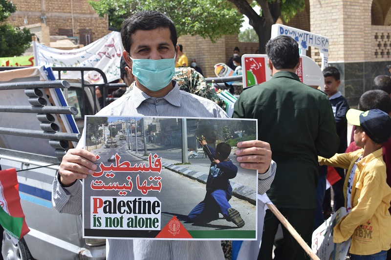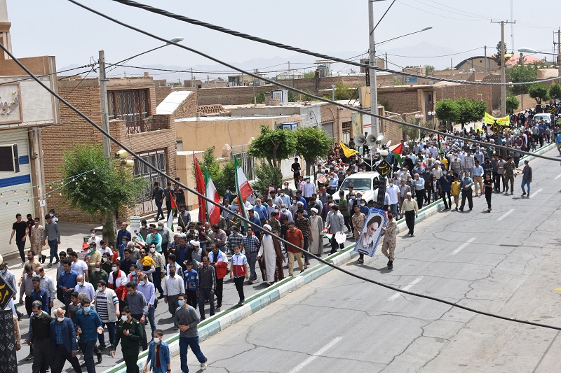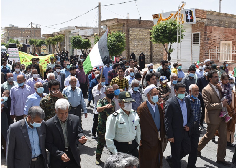 شرکت کنندگان در این راهپیمایی با سردادن شعارهایی همراه با مشتهای گره کرده نفرت و انزجار شدید قلبی خود را از رژیم جعلی، غاصب، نامشروع و کودک کش صهیونیستی و جنایتهای ضدبشری و غیرانسانی آن علیه ملت مظلوم فلسطین نشان میدهند.
