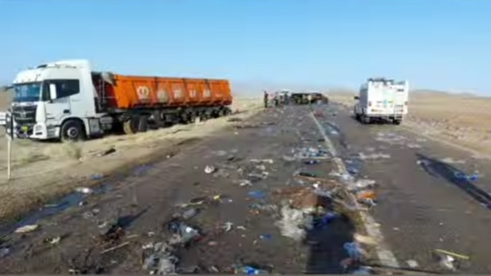 به گزارش خبرنگار یزد فردا "طبس" قاسمیان:تصادف شدید ۲ تریلر و یک کامیون در جاده موسوم به جاده مرگ طبس دو فوتی و ۳ مصدوم مسئول مرکز اورژانس ۱۱۵ شهرستان طبس اعلام کرد ساعت ۶ و ۱۰ دقیقه صبح امروز برخورد دستگاه تریلر و کامیون حامل نوشابه کمپاین با یکدیگر منجر به کشته و مصدوم شدن ۵ نفر گردید.