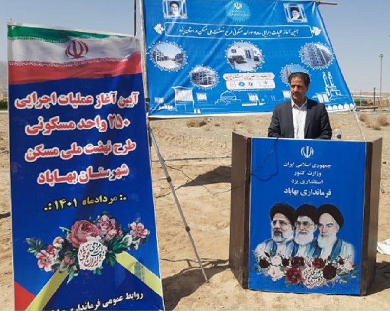 فرماندار بهاباد به درحاشیه آغاز ساخت این واحد های مسکونی درگفت و گو یزد فردا ، با بیان اینکه آئین آغاز عملیات اجرایی 31980 واحد طرح نهضت ملی مسکن استان یزد به صورت هماهنگ در شهرستان‌ها و به صورت ویدئو کنفرانسی باحضور وزیر راه و شهرسازی و استاندار یزد برگزار شد گفت: امروز کلنگ احداث 250 واحد مسکونی در بهاباد زده شد.
