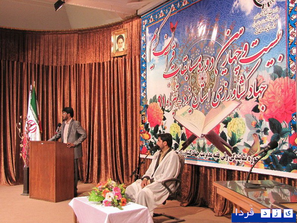ابرکوه :یزدفردا :بیست و چهارمین دوره مسابقات سراسری قرآن جهاد کشاورزی استان یزد با همت دفتر نمایندگی ولی فقیه در جهاد کشاد کشاورزی استان درمحل دانشگاه آزاد اسلامی واحد ابرکوه برگزار شد .