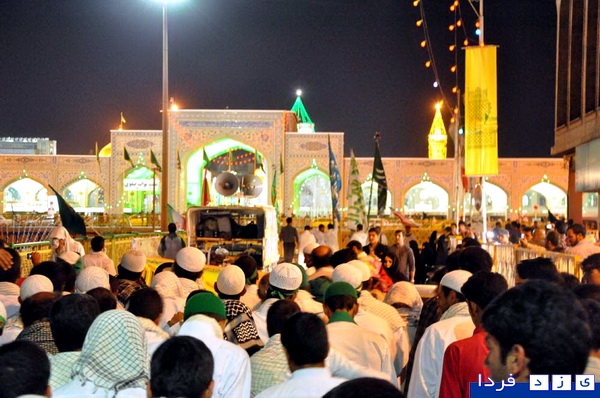 کاروانیان بعد از ۲۸ روز تزکیه و خودسازی و دوری از گناه ومعصیت و انس گرفتن با نماز شب و اذکار و به نوعی اعتکاف خلوتهای شبانه در شب میلاد کریمه اهل بیت حضرت بی بی فاطمه معصومه (سلام ا… علیها) به حریم ملائک پاسبان رضوی وارد شدند امشب گویا عرشیان و فرشیان به این خلوص نیت و به این ارادت و منزلت زائرین غبطه می ورزند. امشب گامهای خسته و دلهای شکسته به دیدار یار حقیقی شتافت و سر بر استان ربویی اش ستائیدند .
