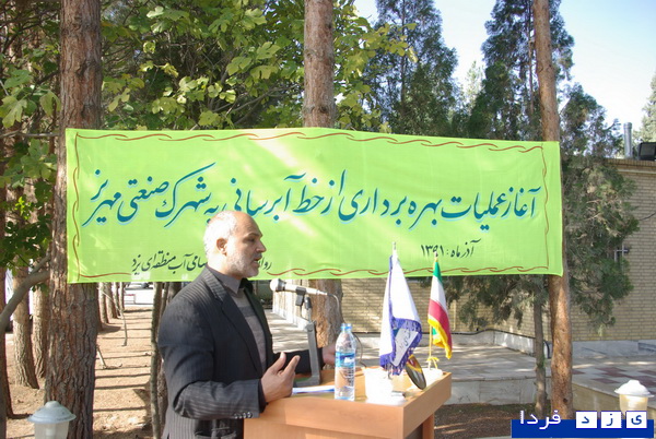 حسین غفوری، مدیرعامل شرکت آب منطقه ای یزد نیز در این مراسم انتقال آب زاینده رود را برای صنعت شهرستان مهریز مایه برکت صنعت و تولید این شهر ذکر کرد و گفت: شهرستان مهریز یکی از مهمترین شهرستانهای استان یزد چه از لحاظ اقلیم محیطی و چه از لحاظ مردمداری و ولایتمداری است که حق این منطقه از استان بیش از اینی که هست می باشد.