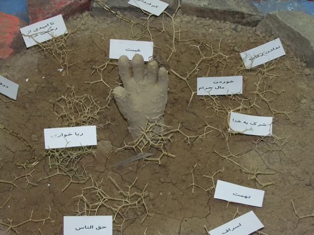 وی تصریح کرد: این نمایشگاه که به بازشناسیˈو آگاهی بخشی مضرات خرافه ها، افکار، اندیشه ها و لباس های شیطانی، جنگ نرم، انتظار، یاران واقعی حضرت قائم(عج)، بهشت و جهنم و ظهورˈپرداخته است با به کارگیری ماکت هایی از فرم های شیطان پرستی به پرده پرداری از اندیشه های کذایی و نوظهور همت گماشته و نیز تعدادی عکس، پوستر و روزنامه دیواری را طراحی و نصب نموده است.