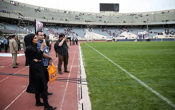 از مدتها پیش اتوبوسهای حامل شرکت کنندگان در مراسم به تهران و ورزشگاه آزادی تهران رسیده بودند و اغلب حاضران از صبح امروز و حتی بامداد در کنار ورزشگاه به انتظار ورود به آن ایستاده بودند.