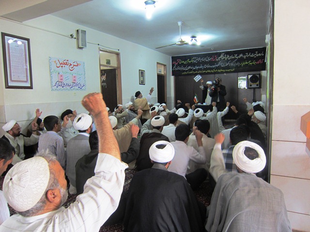 طبس- حقانی- سرپرستی یزدفردا: امام جمعه، روحانیان، طلاب و اساتید حوزه‌های علمیه طبس پیش از ظهر امروز، با تجمع در حوزه علمیه امام صادق(ع) طبس و سردادن شعارهای «مرگ بر آمریکا»، «مرگ بر اسرائیل»، «مرگ بر سلفی» و «مرگ بر وهابی»، هتک حرمت مرقد مطهر حجربن عدی از صحابی بزرگ پیامبر(ص) به‌وسیله سلفی‌ها و وهابیون را محکوم کردند.