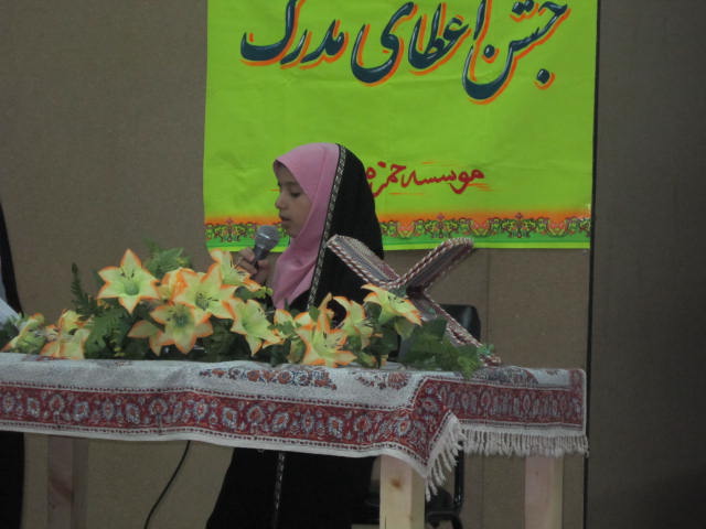 این مراسم با تلاوت آیاتی چند ازقرآن مجید واجرای سرود میلاد امام رضا توسط حافظان آغاز گردید؛ دکلمه ای زیبا درمورد امام رضا و اجرای سرود امام زمان توسط حافظان ازدیگر برنامه های این مراسم بود در ادامه از خردسال ترین حافظان موسسه بنام های فاطمه فریح پور(حافظ1جزء) ومبینا دهقانی (حافظ4جزء) تجلیل به عمل آمد. درادامه حجـة الاسلام والمسلمین صباغی در مورد عظمت و اهمیت انس با قرآن وحرکت درمسیرقرآن نکاتی را بیان و قرآن را برترین عامل سعادت، نشاط، آبادانی و موفقیت دنیوی واخروی انسانها دانستند.