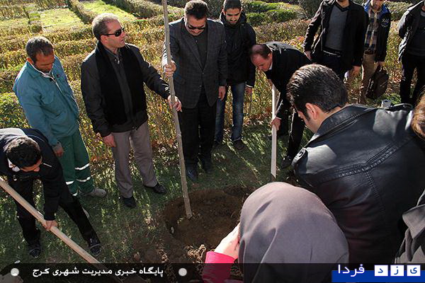 در بخش دیگری دانشجویان رشته منابع طبیعی و کشاورزی دانشگاه آزاد واحد پرند به مناسبت روز دانشجو همراه با اساتید خود و با راهنمایی کارشناسان سازمان پارکها و فضای سبز شهرداری کرج، درخت چناری را در پارک شهید چمران کاشتند.