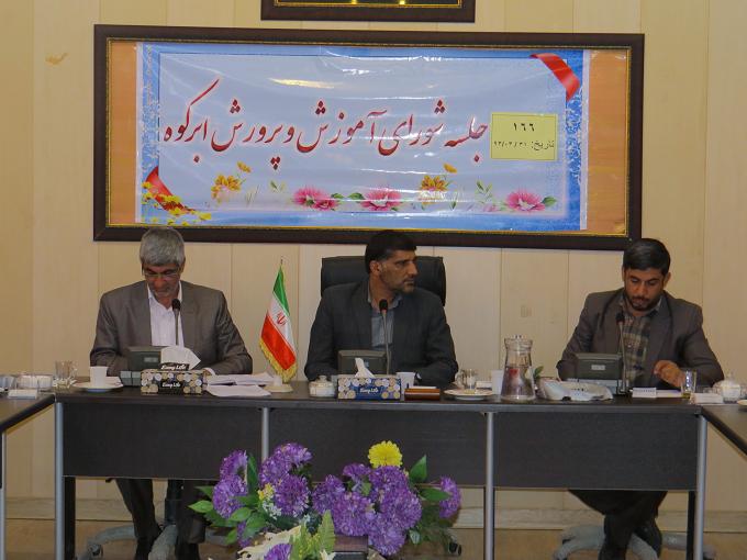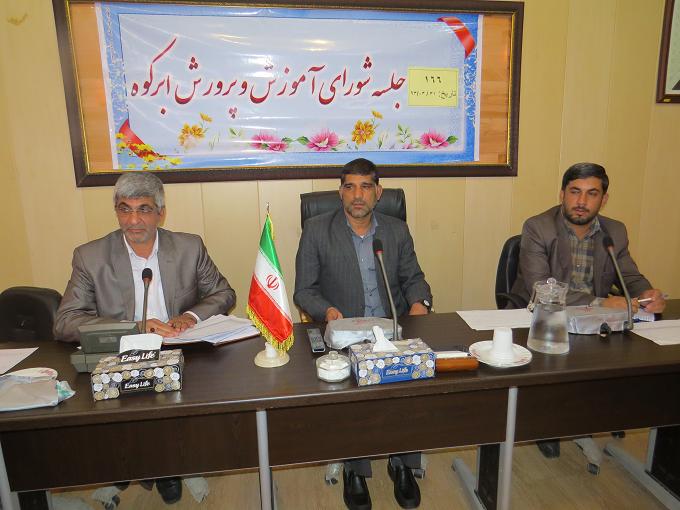 ابرکوه خبرنگار یزد فردا مهدی کارگر "اولین جلسه شورای آموزش و پرورش به ریاست آقای سید نبی رسولی فرماندار ، آقای مسلم روحی پناه رئیس آموزش و پرورش ابرکوه و سایر برگزار شد