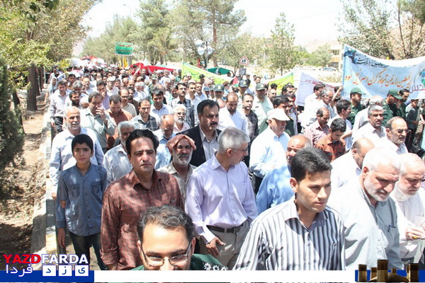 زارع با ستایش از حضور حماسی مردم تفت در این راهپیمایی اظهار داشت: مردم خداجو و همیشه در صحنه شهرستان تفت با دهان روزه و در گرمای ظهر تابستان با حضور گسترده و باشکوه خود در راهپیمایی روز قدس دست به خلق حماسه ای جاودان زدند و لحظه تاریخی دیگری را برای این خطه عزیز از میهن اسلامی به ارمغان آوردند.