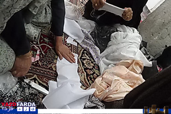 دوختن پیراهن در این رسم که بیشتر توسط زنان انجام می شود، گاهی در مسجد انجام می شود و گاهی نیز به بعد از نماز موکول می شود و در منزل اقدام به دوخت آن می کنند.