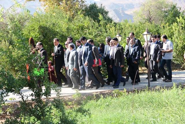 به گزارش ستاد بزرگداشت هفته دولت در تفت، در این مراسم استاندار و معاونین وی، فرماندار، امام جمعه تفت و جمعی از مسئولین میراث فرهنگی استان و شهرستان تفت مسعود سلطانی فر را همراهی می کردند. در این افتتاحیه از لوح یادبود آیین احیاء بهره برداری از باغ صدری تفت پرده برداری شد.