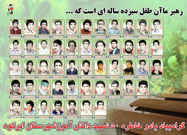 ابرکوه خبرنگار یزد فردا مهدی کارگر "به مناسبت هفته دفاع مقدس یادواره بیش از 72تن از شهدای دانش آموز ، فرهنگی وجوانان امروز در مصلی شهدای محراب ابرکوه با حضورجمعی ازخانواده های معظم شهدا ،مسوولان وطبقات مختلف مردم ، دانش آموزان برگزار شد.