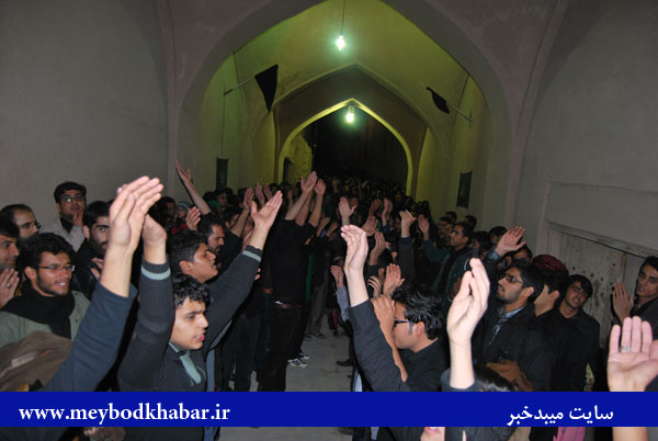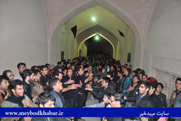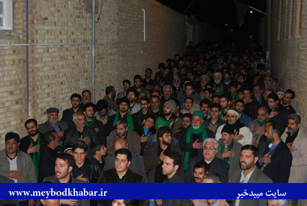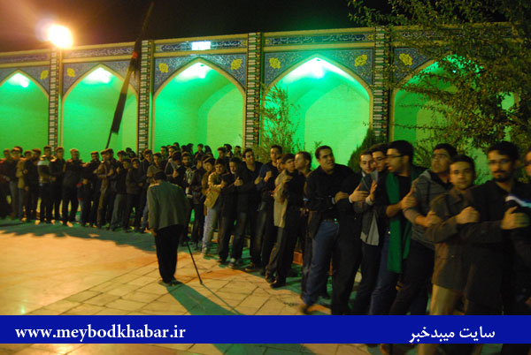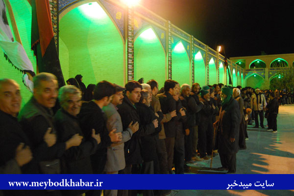 این مراسم بومی در امام زاده سید صدر الدین قنبر برگزار می شود و عزاداران که متشکل از اعضای تمام هیئات عزاداری بشنیغان و میبدبالا می باشند از محله میبد بالا با خواندن نوحه مخصوص آن شب از محرم به صورت دسته جمعی، به سمت امام زاده مذکور حرکت می کنند.