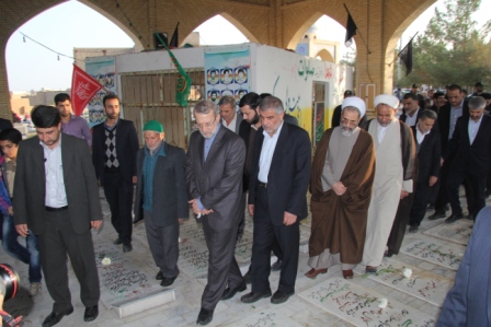 ايشان سپس با حضور بر سر تربت پاك اين نماينده مردمي با نثار شاخه اي گل و قرائت فاتحه ياد و خاطر ايشان را گرامي داشتند . وي سپس با قرائت فاتحه اي بر سر تربت پاك شهيدان جنگ تحميلي در گلزار شهداء فيروز آباد با رهپويان راه ولايت تجديد ميثاق نمودند .