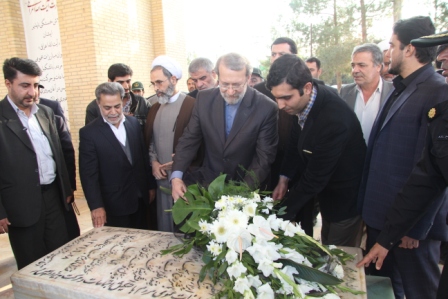 دكتر لاريجاني همچنين با حضور در گلزار شهداي شهيديه با نثار شاخه اي گل از مقام حضرت آيت الله اعرافي (ره) امام جمعه فقيد شهرستان و شهيدان گلگون كفن اين منطقه تجليل نمودند .