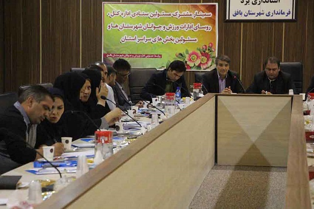 یزد فردا :سمینار روسای ادارات ورزش و جوانان شهرستانها، مسئولان ستادی اداره کل،و مسئولان بخش های سراسر استان یزد با حضور مدیرکل ورزش و جوانان استان یزد در سالن کنفرانس شیخ محمد تقی بافقی فرمانداری بافق برگزارشد.
