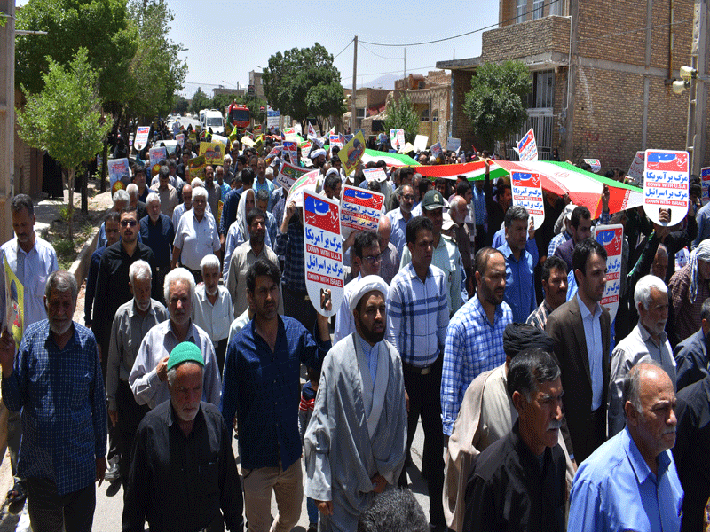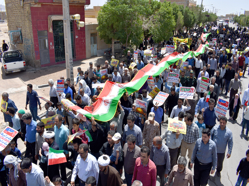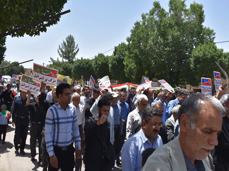 مردم مومن و روزه دار بهاباد لبیک گویان به فرمان بنیان گذار کبیر انقلاب اسلامی ندای آزادی قدس را سر دادند و همگام با ملتهای آزاده و آزادیخواه جهان به یاری ملت مظلوم فلسطین آمدند.