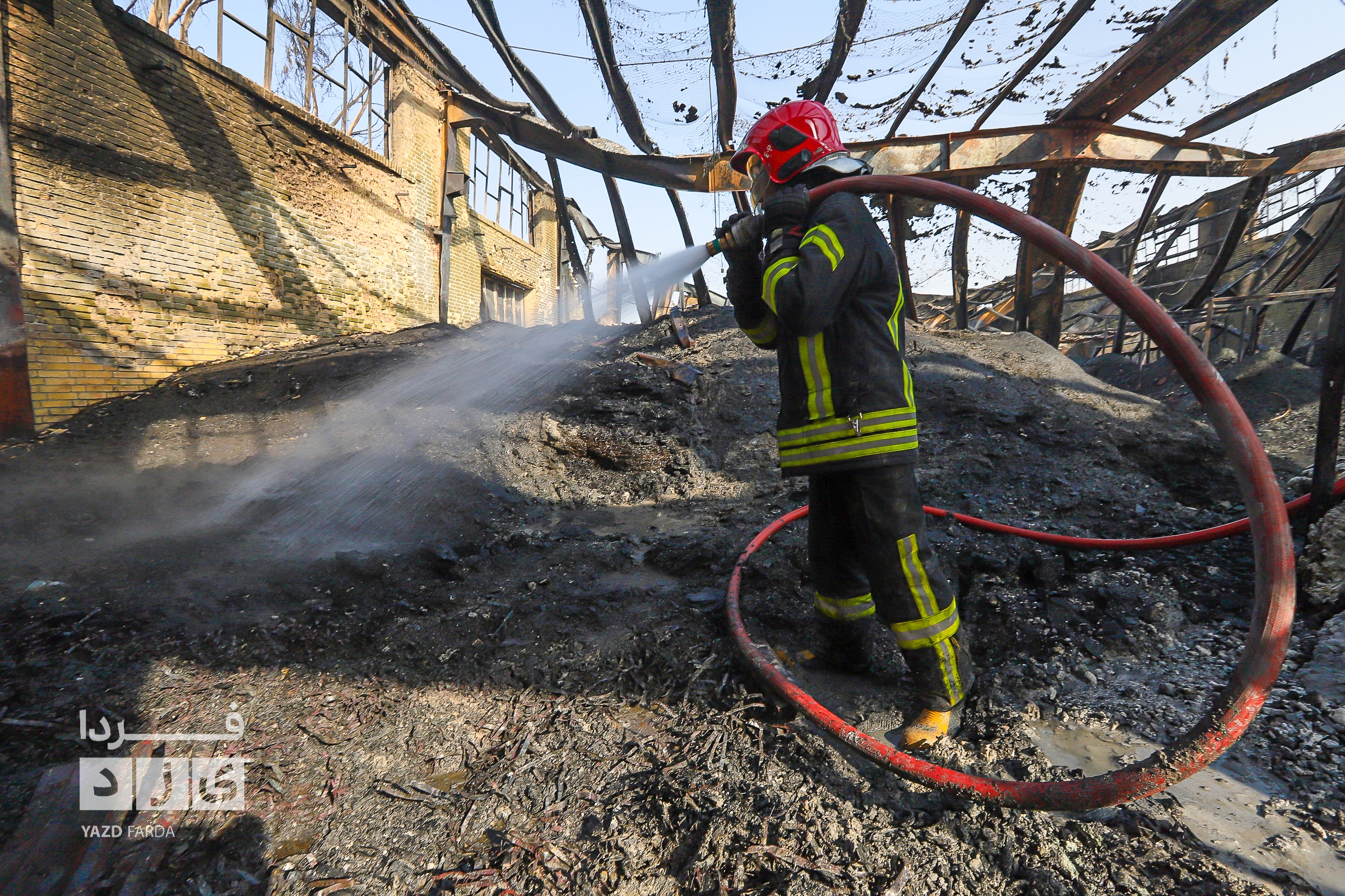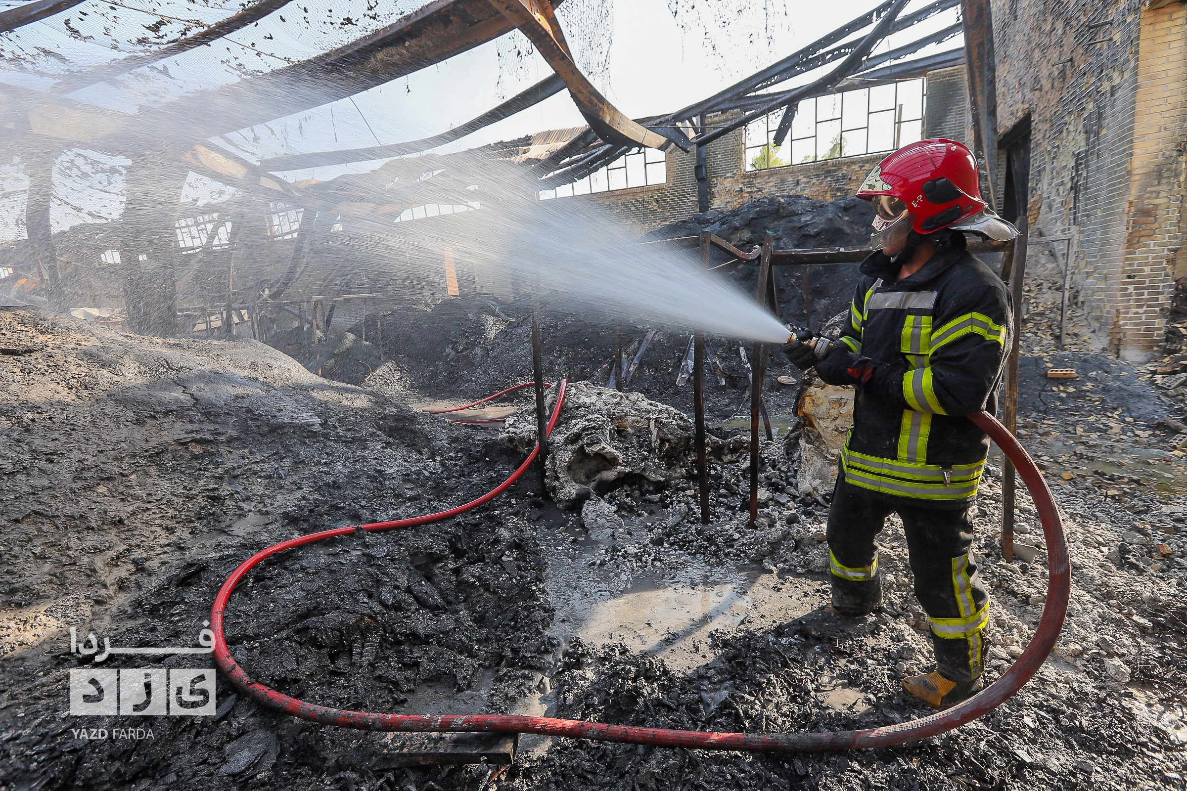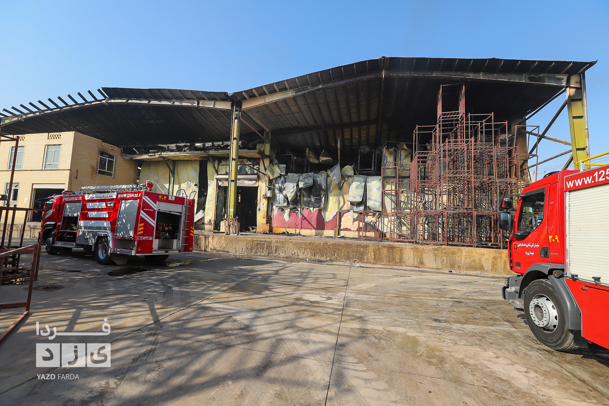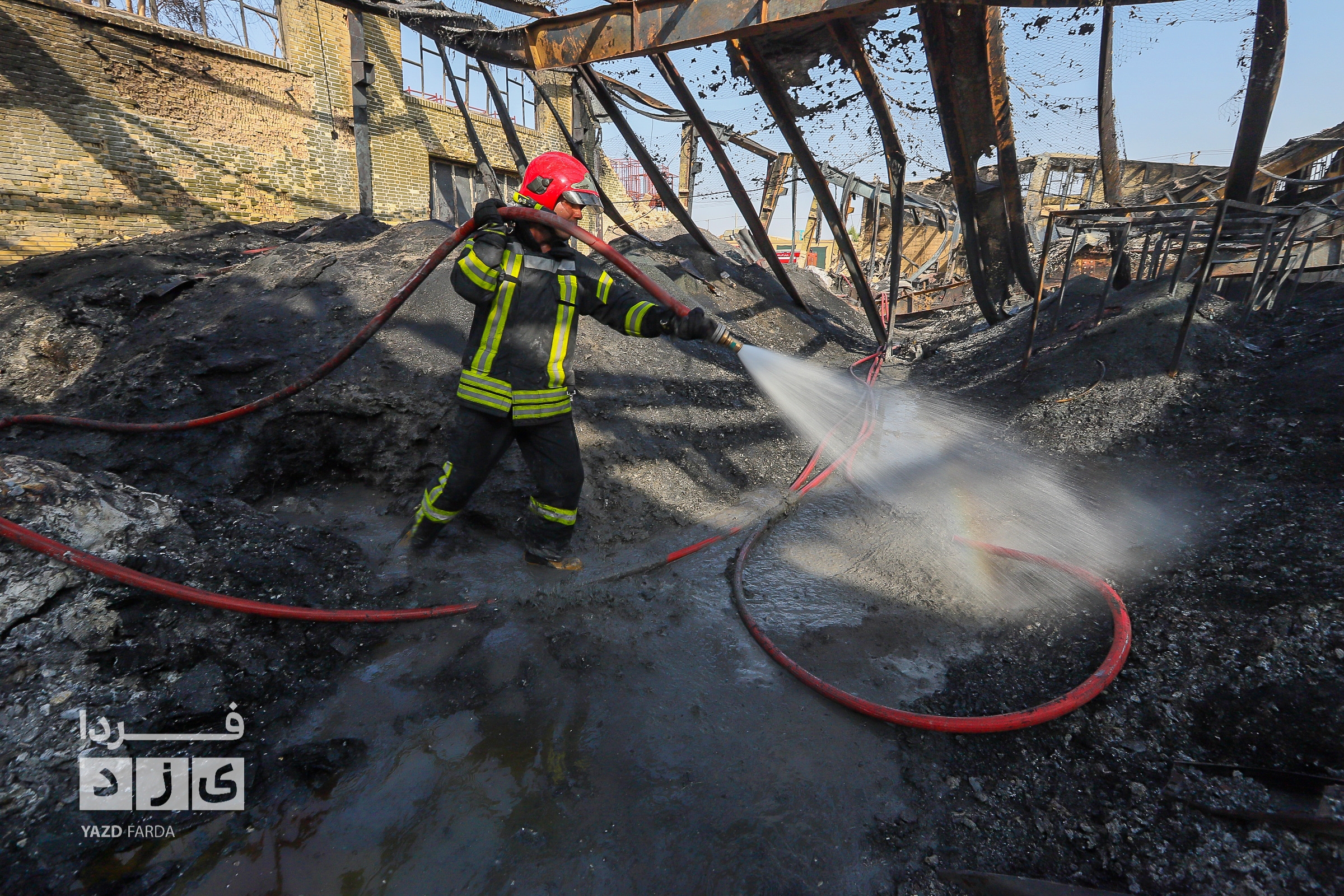 عملیات اطفاء آتش سوزی دوباره سردخانه در شهرک صنعتی و ایمن سازی محل با حضور معاون عمرانی استاندار یزد